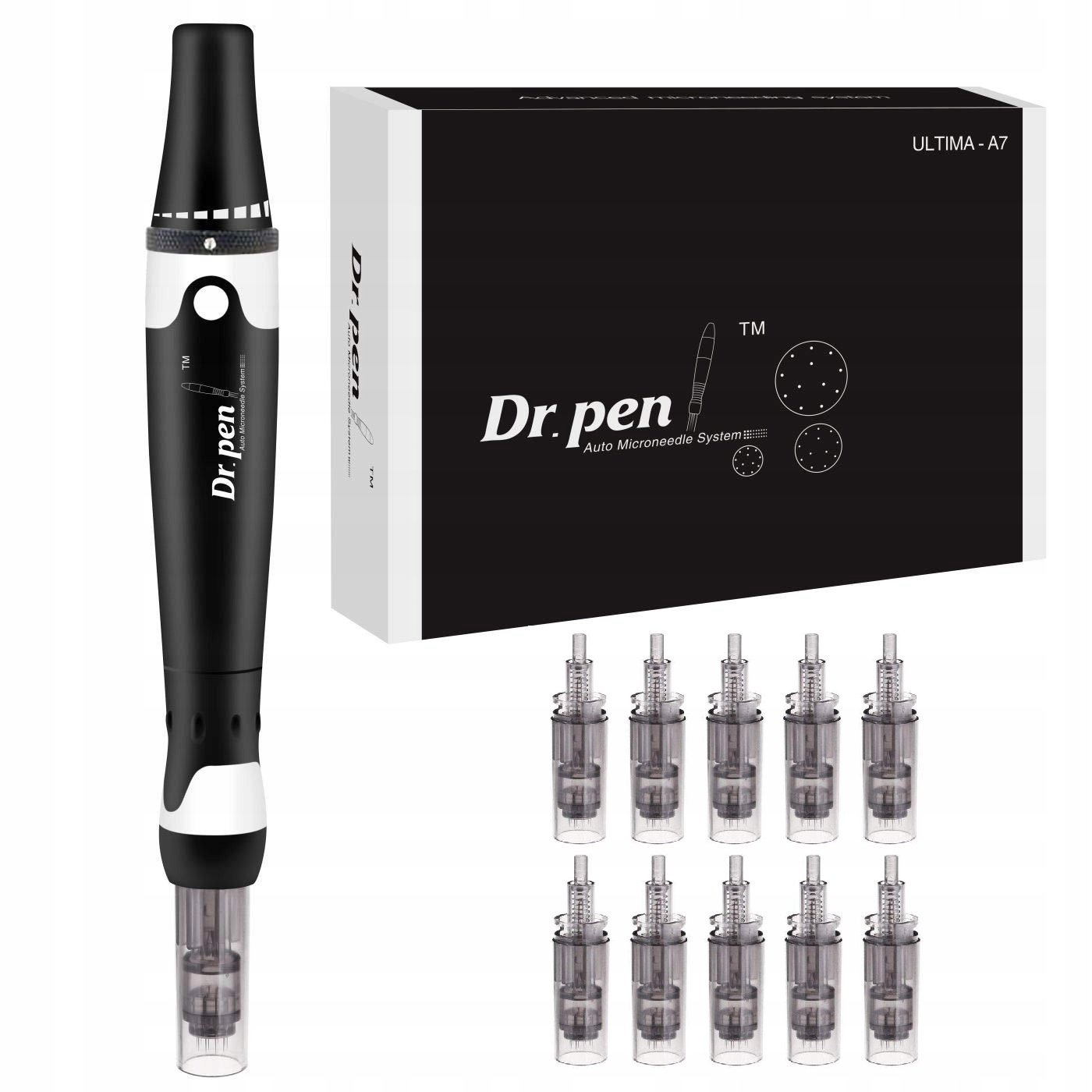 Dermapen Dr Pen ULTIMA A7 do Mezoterapia Mikroigłowa Twarzy 10 Kartridży